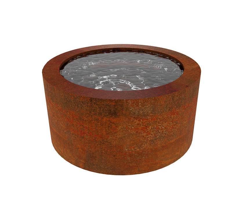- Zbiornik wodny wykonany jest ze stali corten (dostarczany w stanie surowym, nieutleniony, proces utleniania „rdzewienia” trawa około 4-5 miesięcy, przy ekspozycji produktu na czynniki atmosferyczne)